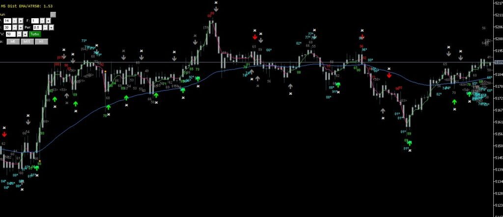 Simultaneously evaluates M1, M5, and M15 on every signal. The best qualifying score across agreeing timeframes is used for filtering.